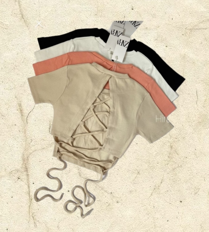 کراپ زنانه از رو دوخت آستین کوتاه زارا