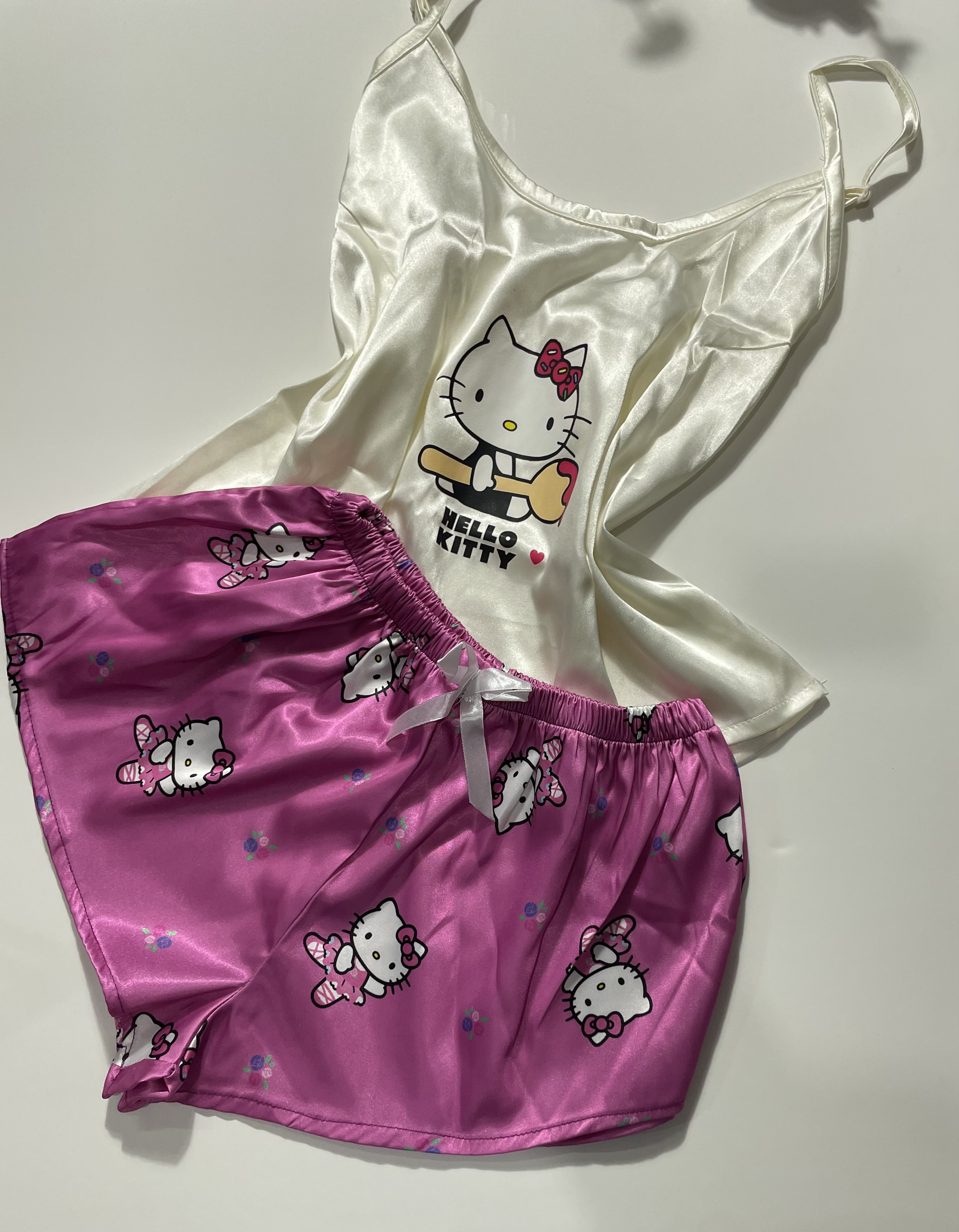 - تاپ و شلوارک ساتن زنانه مدل بند دار