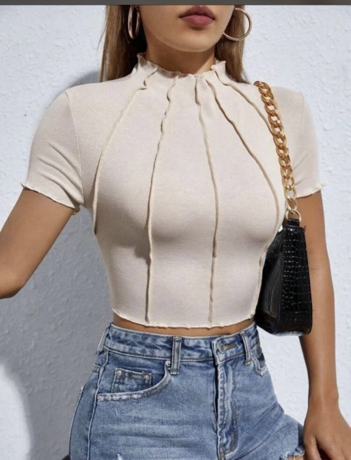کراپ آستین کوتاه کثیف دوزی دوخت از رو زنانه جنس کبریتی فیری سایز