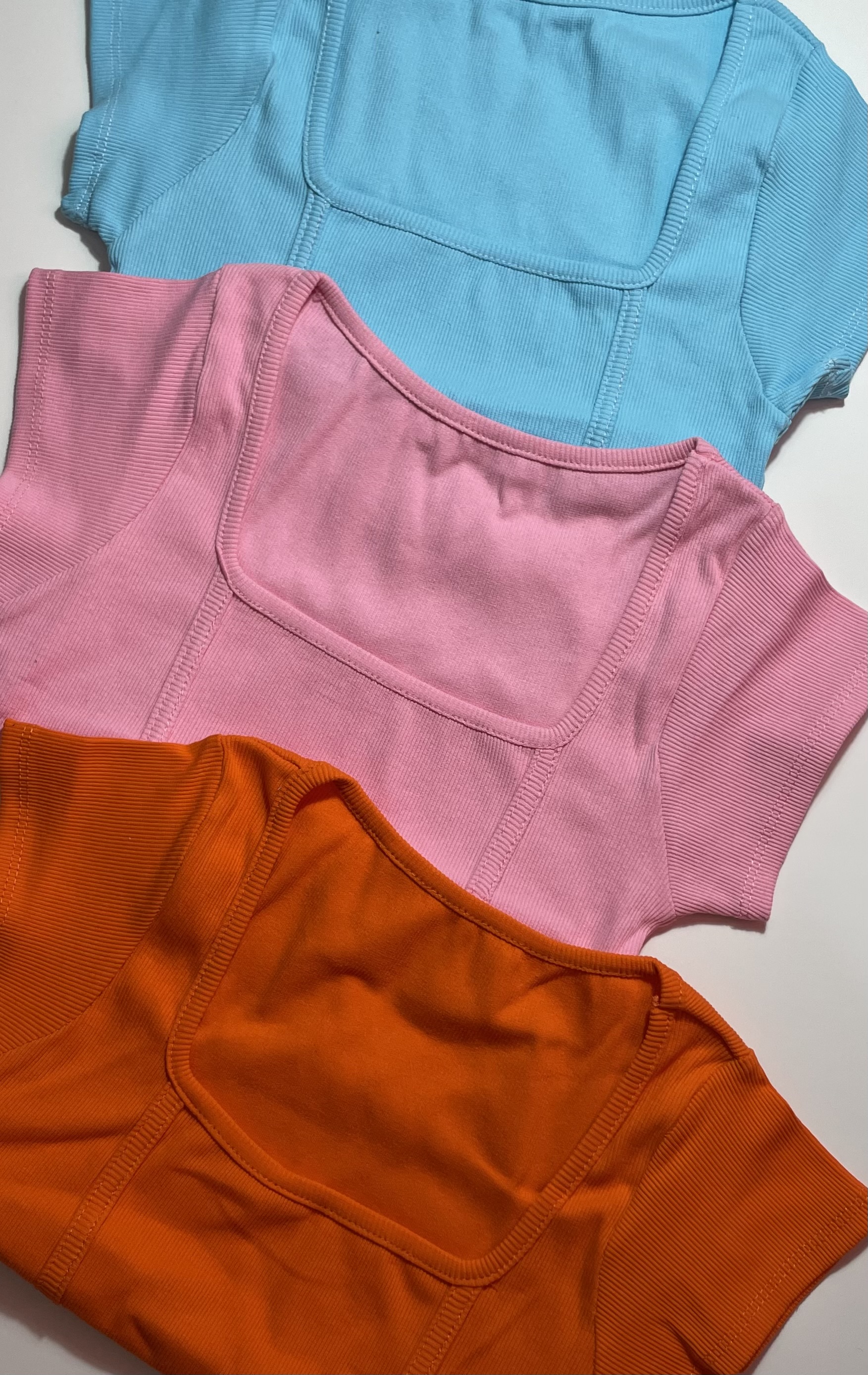 کراپ تیشرت زنانه جذب آستین کوتاه جنس نخ پنبه کبریتی ریز