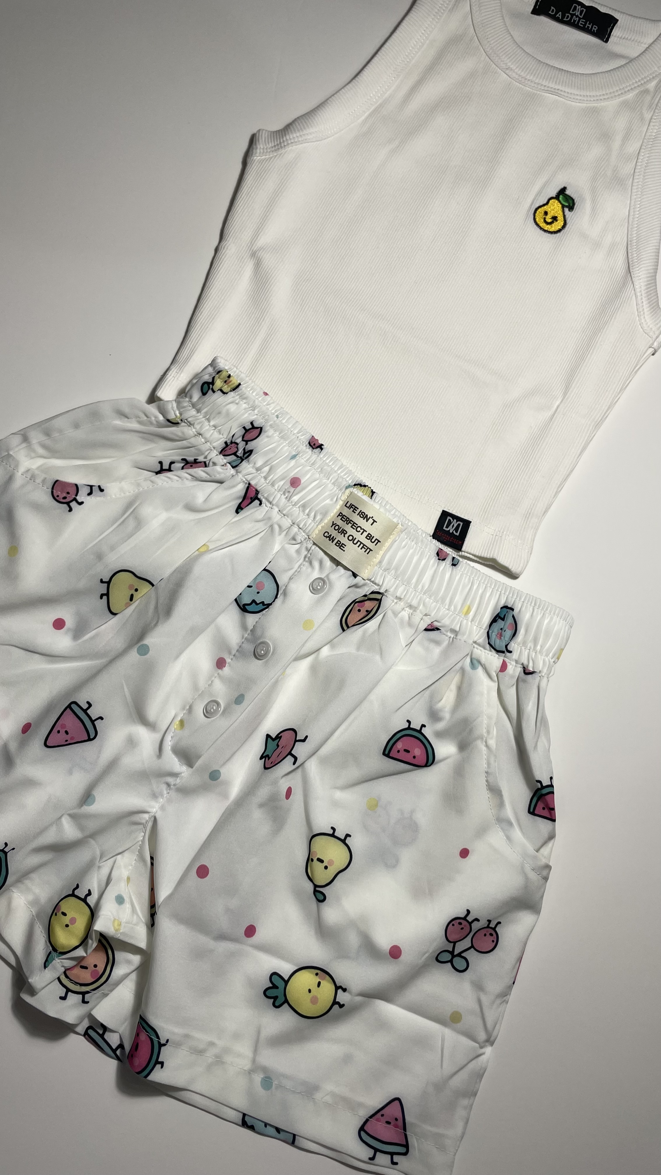 تاپ و شلوارک زنانه یقه گرد مدل چند میوه