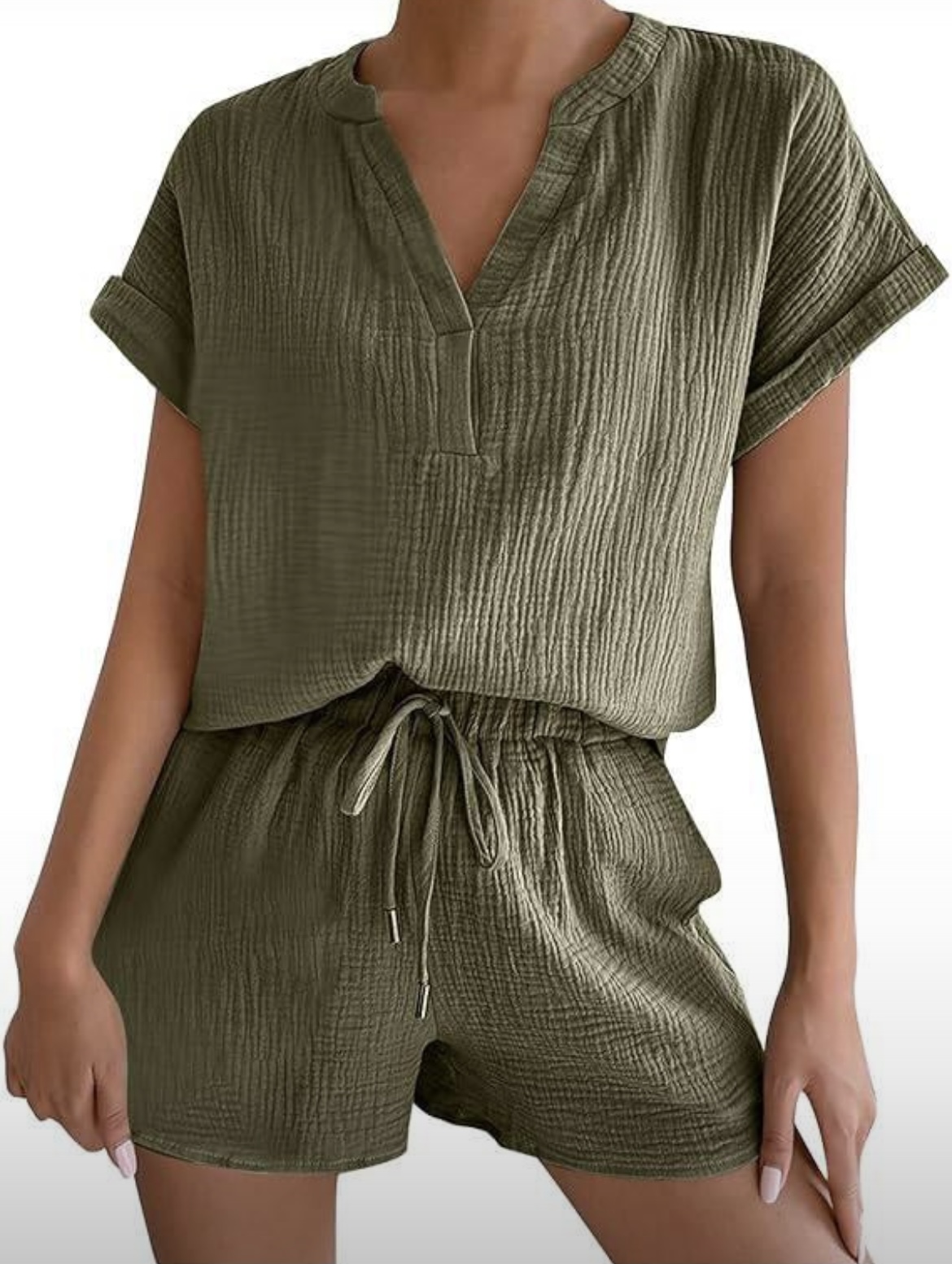 تاپ و شلوارک زنانه یقه گرد مدل خرچنگ