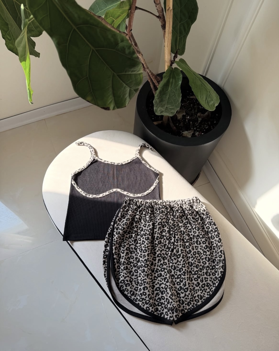 تاپ و شلوارک زنانه مدل پلنگی جنس نخ پنبه کبریتی ریز